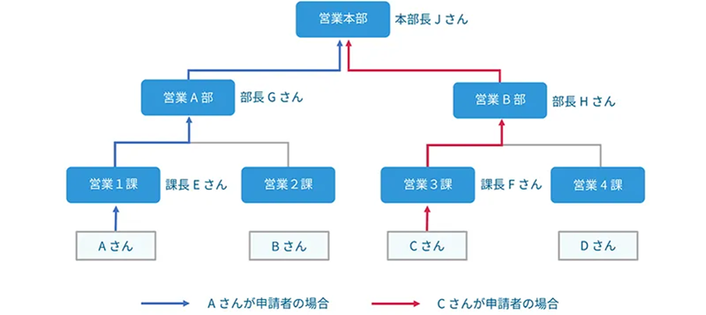 kintone上のワークフロー経路を定義するアプリによって、柔軟な承認経路を実現する事が可能です。また、プロセス管理では申請元アプリごとに設定が必要だった承認経路をマスタアプリで定義することで承認経路を一元管理することができます。